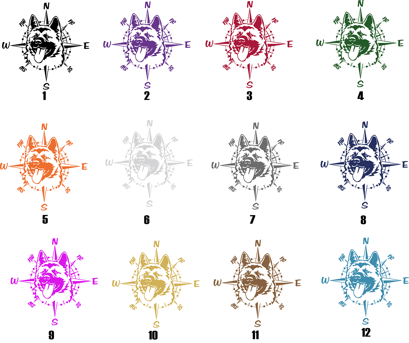 Preview: Aufkleber "American Akita" Kopf mit Windrose/Kompass