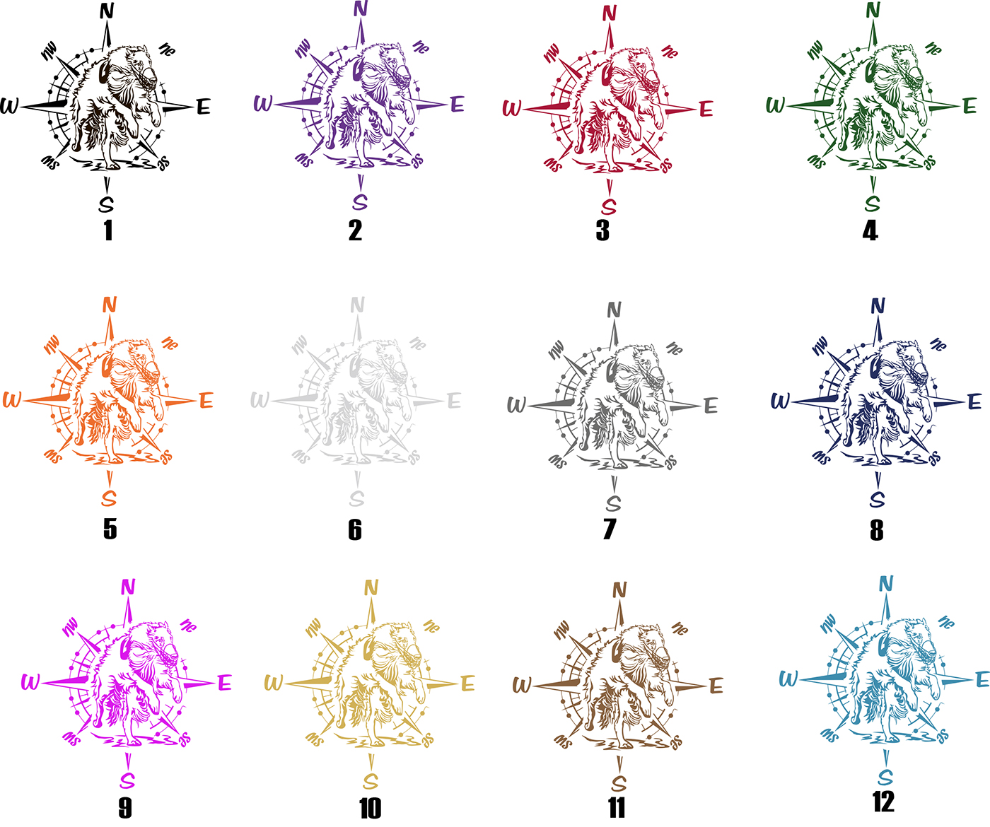 Preview: Aufkleber "Barsoi" mit Windrose/Kompass
