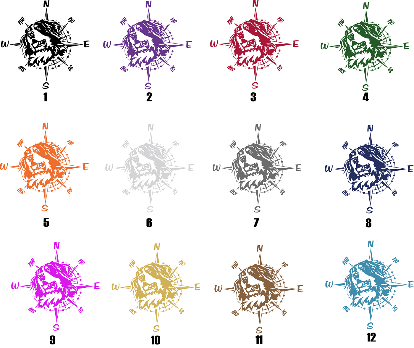Preview: Aufkleber "Berner Sennenhund" Kopf mit Windrose/Kompass