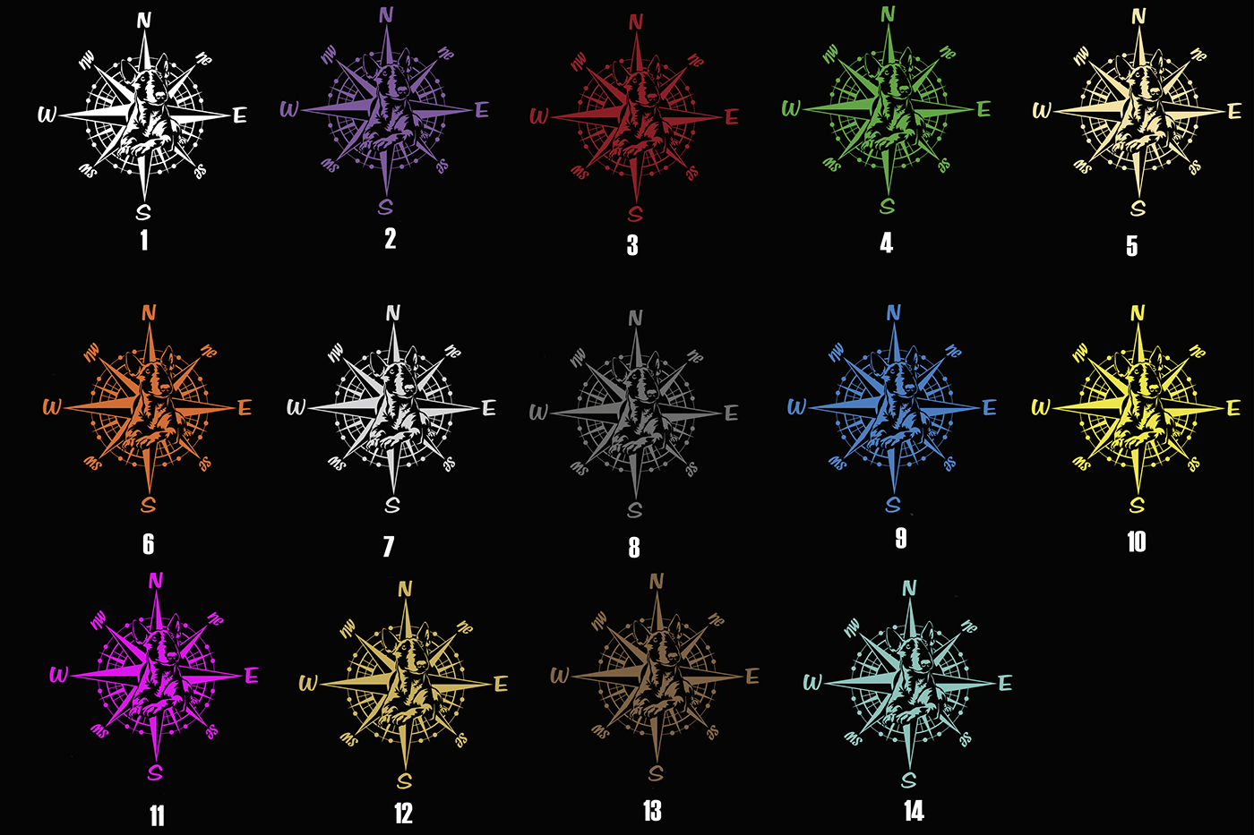 Mobile Preview: Aufkleber "Bullterrier" Kopf mit Windrose/Kompass
