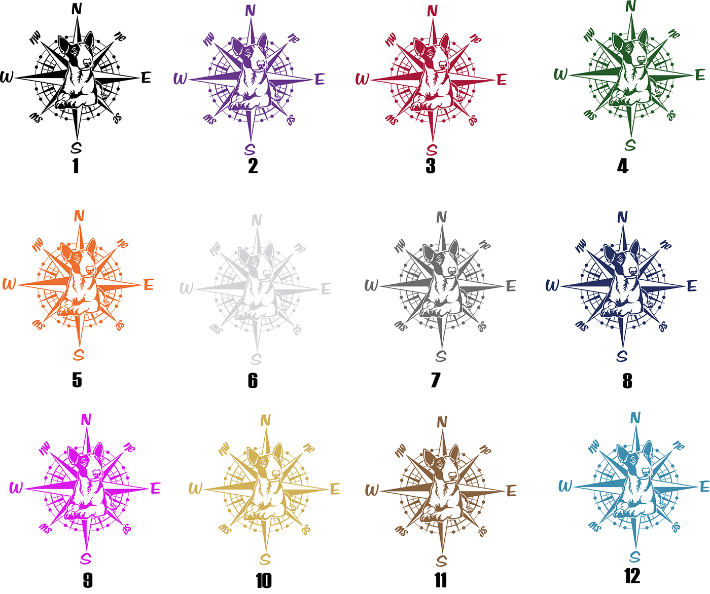 Preview: Aufkleber "Bullterrier" Kopf mit Windrose/Kompass
