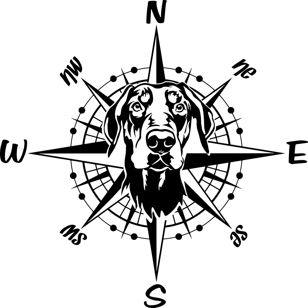 Aufkleber "Dobermann" mit Windrose/Kompass