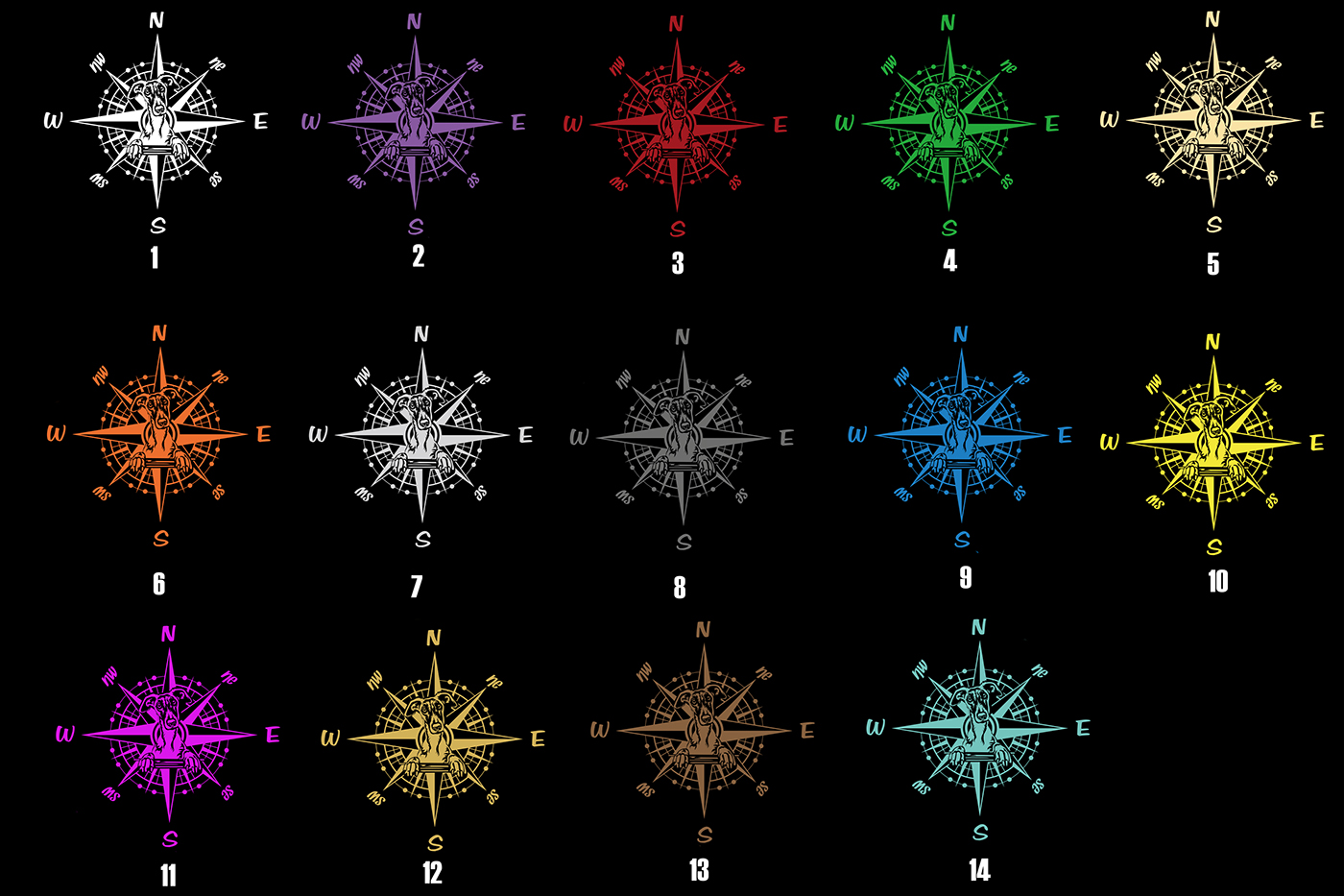 Preview: Aufkleber "Galgo" Kopf mit Windrose/Kompass