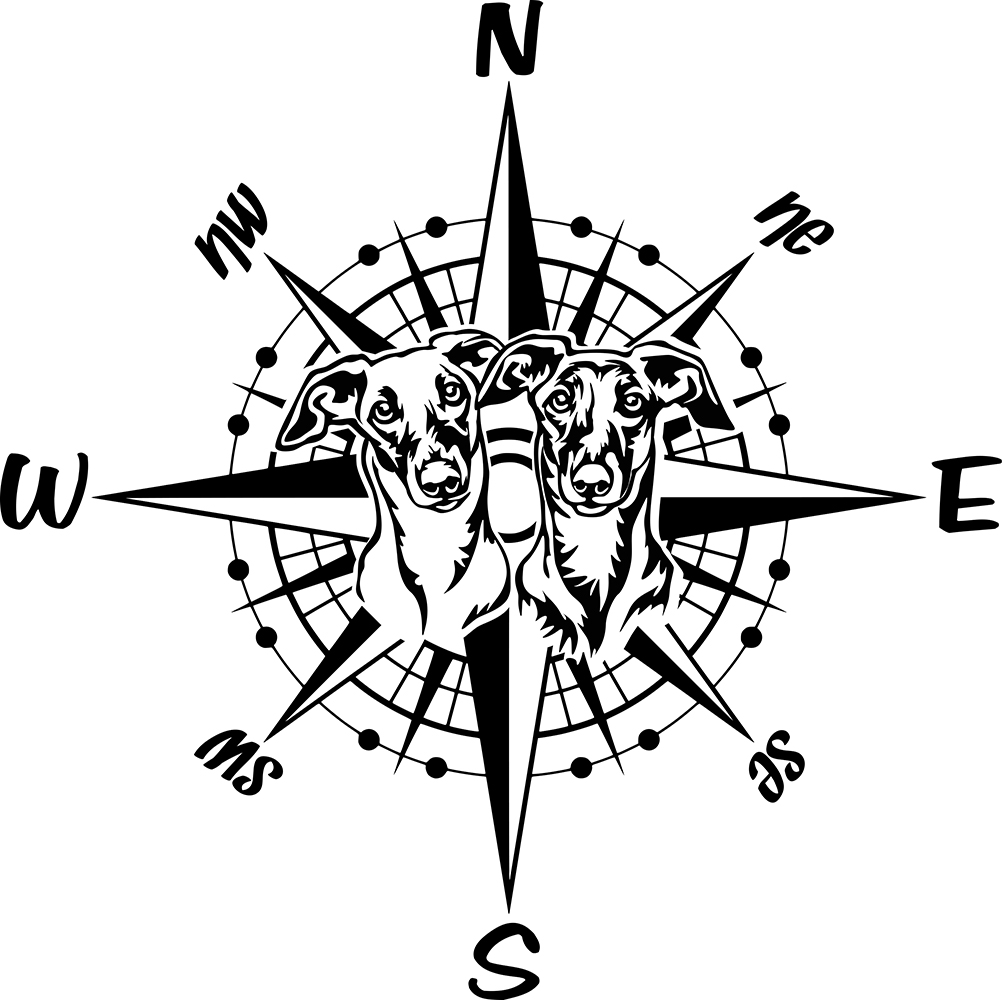 Aufkleber "Galgo" Kopf mit Windrose/Kompass