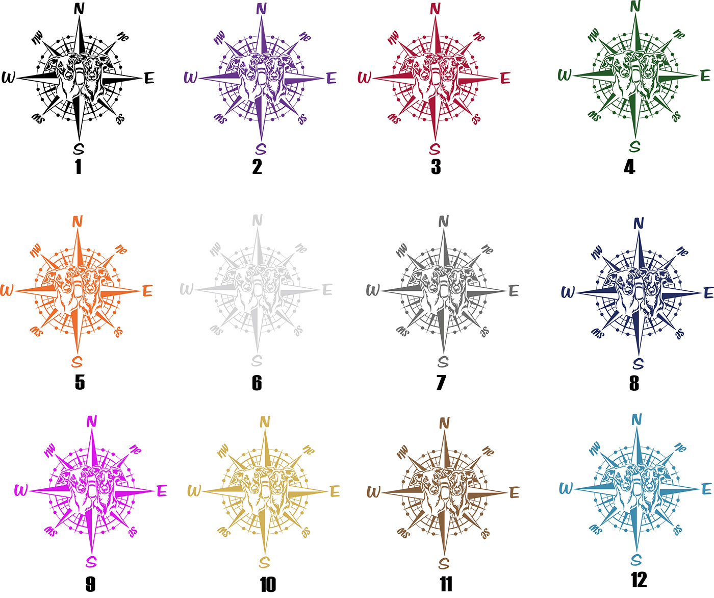 Preview: Aufkleber "Galgo" Kopf mit Windrose/Kompass