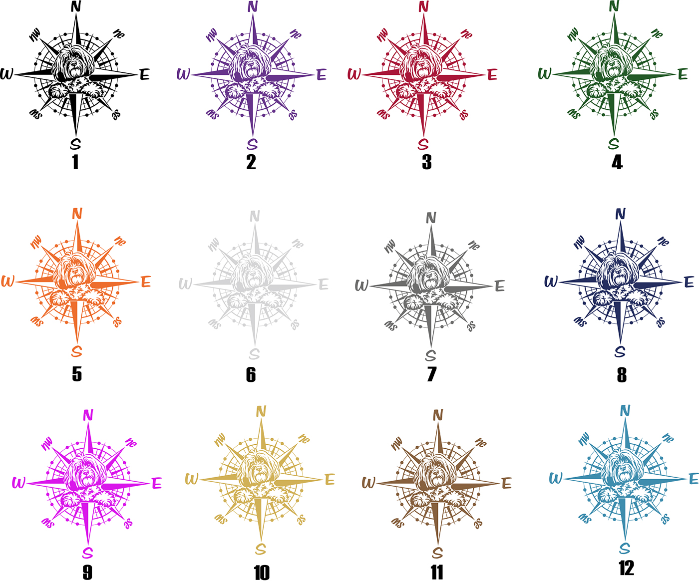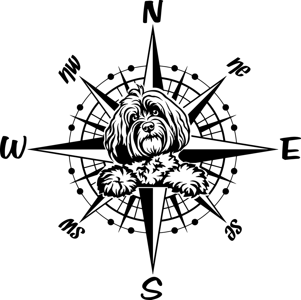 Aufkleber "Havaneser" Kopf mit Windrose/Kompass