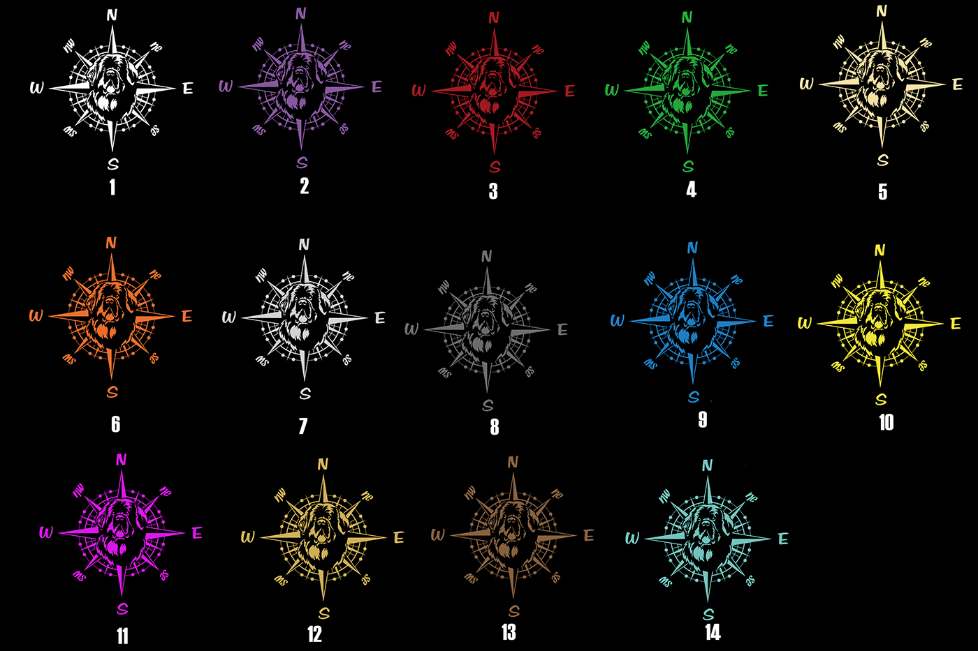 Preview: Aufkleber "Neufundländer" Kopf mit Windrose/Kompass