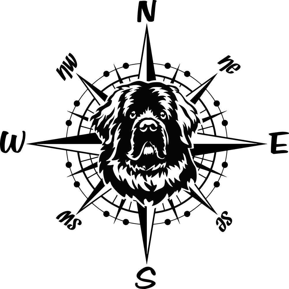 Mobile Preview: Aufkleber "Neufundländer" Kopf mit Windrose/Kompass