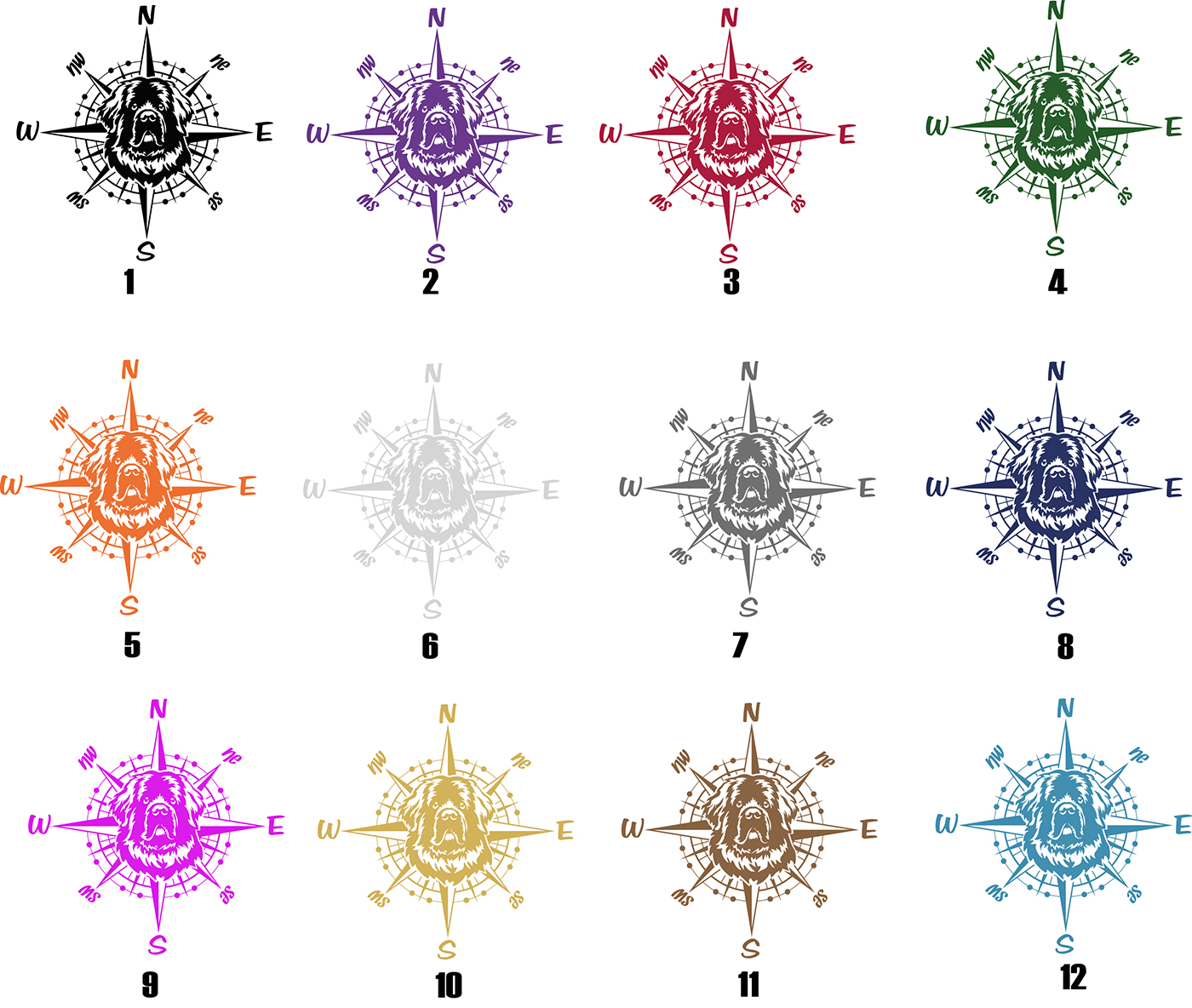 Preview: Aufkleber "Neufundländer" Kopf mit Windrose/Kompass