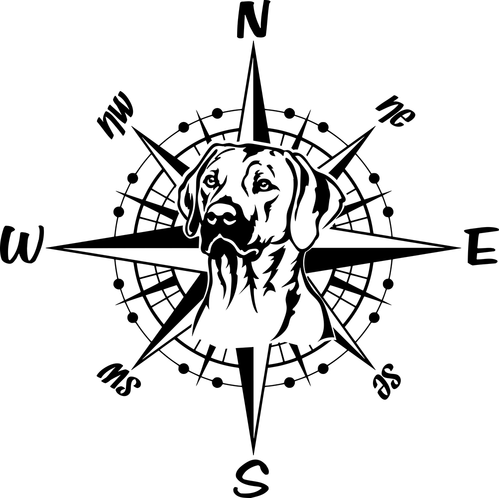Aufkleber "Rhodesian Ridgeback" Kopf mit Windrose/Kompass