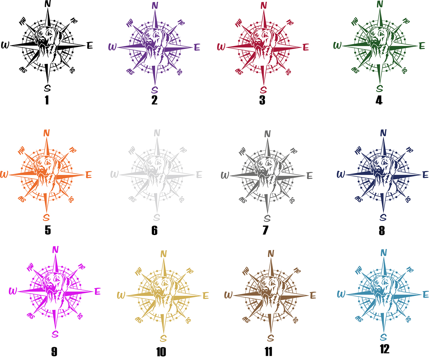 Preview: Aufkleber "Rhodesian Ridgeback" Kopf mit Windrose/Kompass