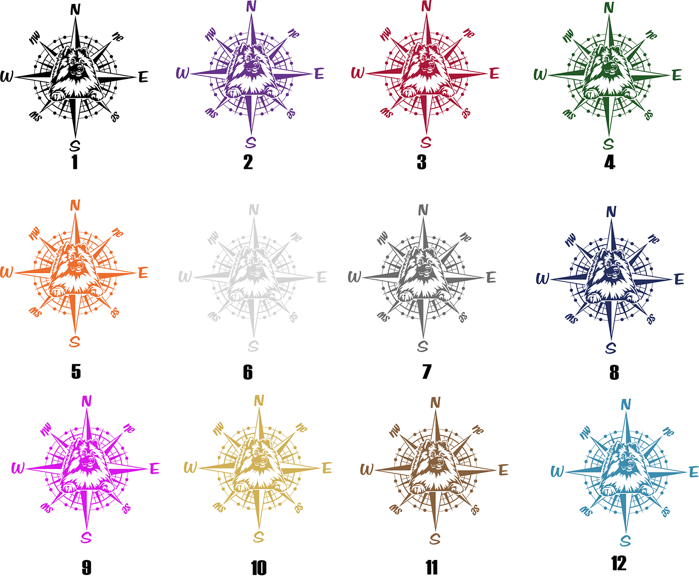 Mobile Preview: Aufkleber "Wolfsspitz" Kopf mit Windrose/Kompass