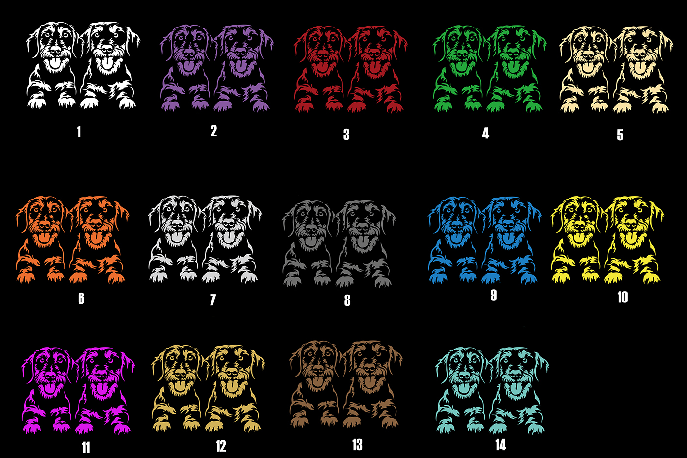 Auf Wunsch drucken wir Ihnen gegen Aufpreis den Namen ihres Hundes, Ihren Zwingernamen, die Rasse o.ä. gleich mit. Wählen Sie dazu im Optionsfeld "inkl. Wunschtext aus", anschließend im Personalisierungsfeld die Schriftart auswählen und Ihren Wunschtext in das darunterliegendeTextfeld eingeben. Ihr Wunschtext kommt als separater Aufkleber, so dass Sie ihn frei am Motiv verkleben können.