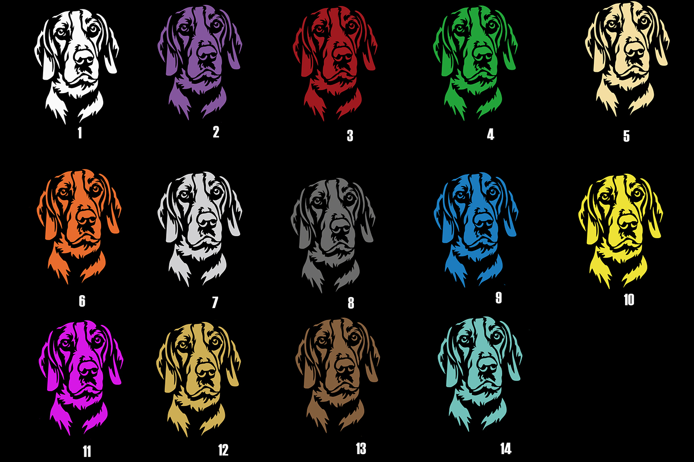 Auf Wunsch drucken wir Ihnen gegen Aufpreis den Namen ihres Hundes, Ihren Zwingernamen, die Rasse o.ä. gleich mit. Wählen Sie dazu im Optionsfeld "inkl. Wunschtext aus", anschließend im Personalisierungsfeld die Schriftart auswählen und Ihren Wunschtext in das darunterliegendeTextfeld eingeben. Ihr Wunschtext kommt als separater Aufkleber, so dass Sie ihn frei am Motiv verkleben können.