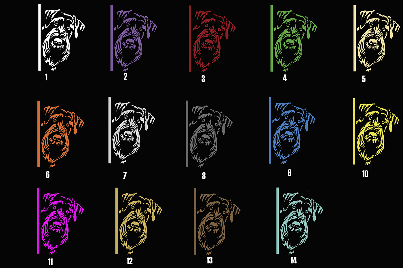 Die Hingucker am Auto, Wohnmobil oder Hundeanhänger. Dieses Motiv eignet sich besonders gut an dunklen Türen, Scheiben oder dunklen, glatten Wänden (keine Rauhfaser!)