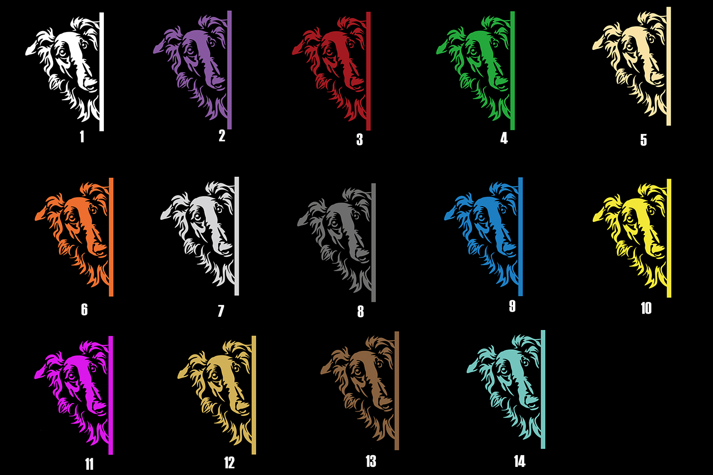 Die Hingucker am Auto, Wohnmobil oder Hundeanhänger. Dieses Motiv eignet sich besonders gut an dunklen Türen, Scheiben oder dunklen, glatten Wänden (keine Rauhfaser!)