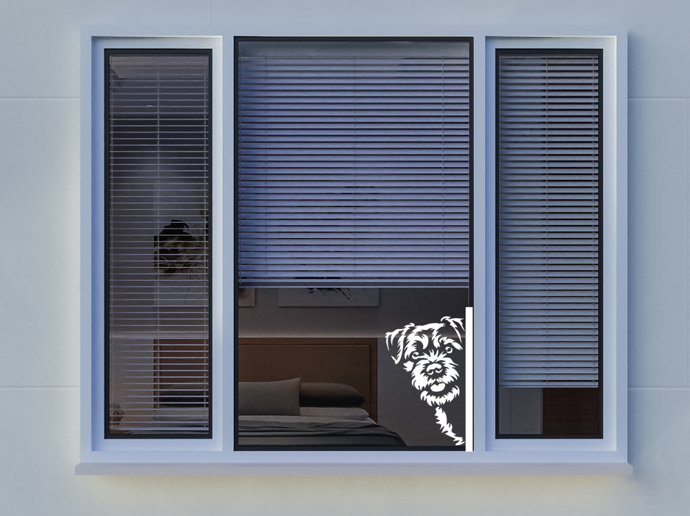 Innenverklebung - innen auf Scheiben. Bitte daran denken, dass Scheiben sehr dunkel wirken können und das ein Aufkleber in weniger kontrastreicher Farbe möglicherweise nicht wie gewünscht zur Geltung kommt. Wählen Sie dann eine eher kräftige Farbe (kein graphit!) oder einen Aufkleber aus den Kategorien "Aufkleber für helle Hintergründe".