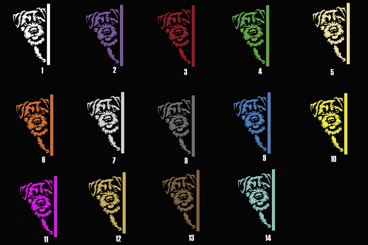 Die Hingucker am Auto, Wohnmobil oder Hundeanhänger. Dieses Motiv eignet sich besonders gut an dunklen Türen, Scheiben oder dunklen, glatten Wänden (keine Rauhfaser!)