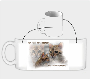 Das Motiv verbindet sich beim Brennen der Tasse mit der Oberfläche. Statt eines gummiartigen Auftrages bleibt die Oberfläche der Tasse glatt und glänzend. Die Tasse sieht dadurch aus, als käme sie direkt aus dem Brennofen, Zusätzlich ist durch die hellweiße Farbe der Tasse eine optimale Farbsättigung gewährleistet.